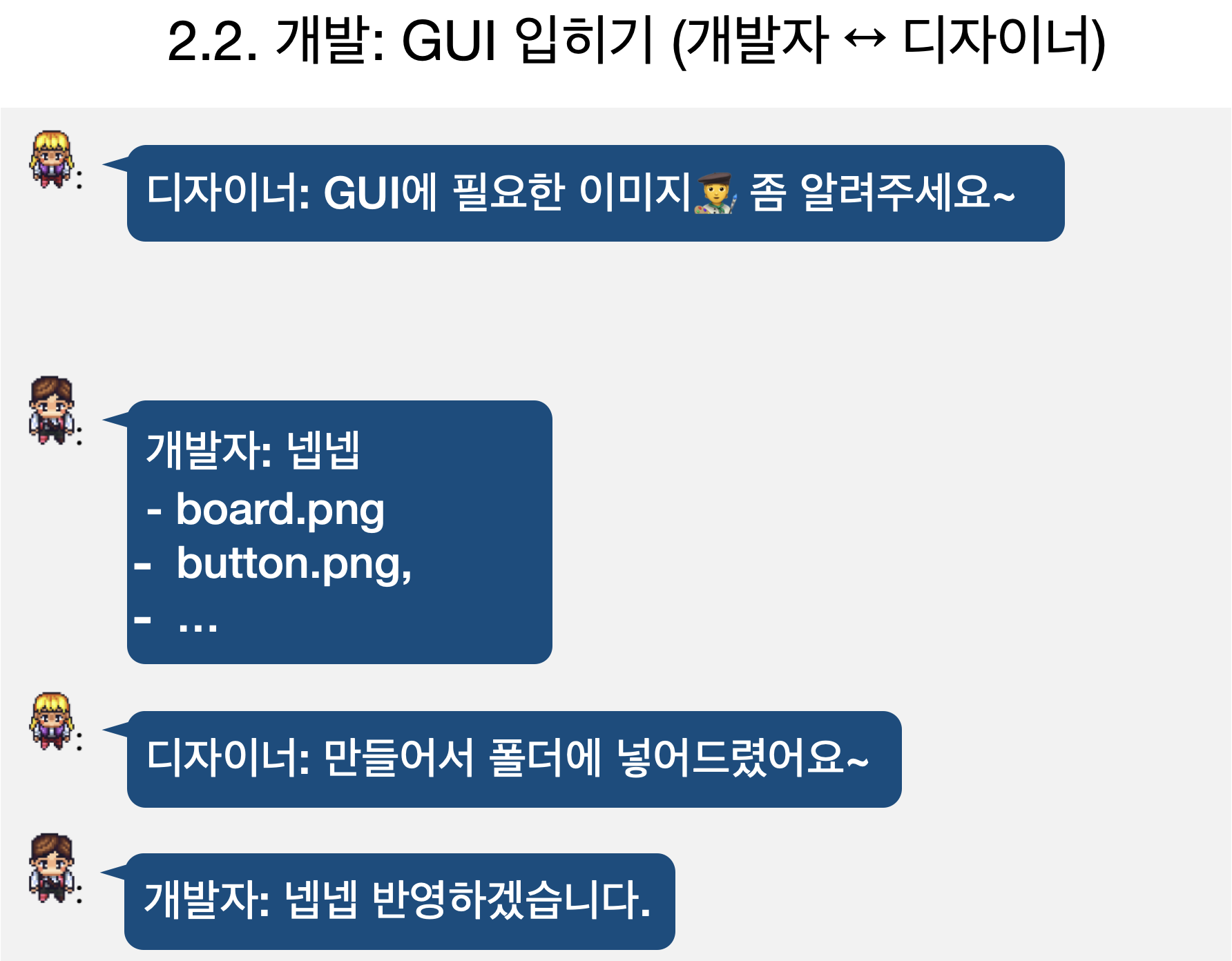 그 다음, 개발자와 디자이너간에 대화를 통해서 GUI를 개발합니다.