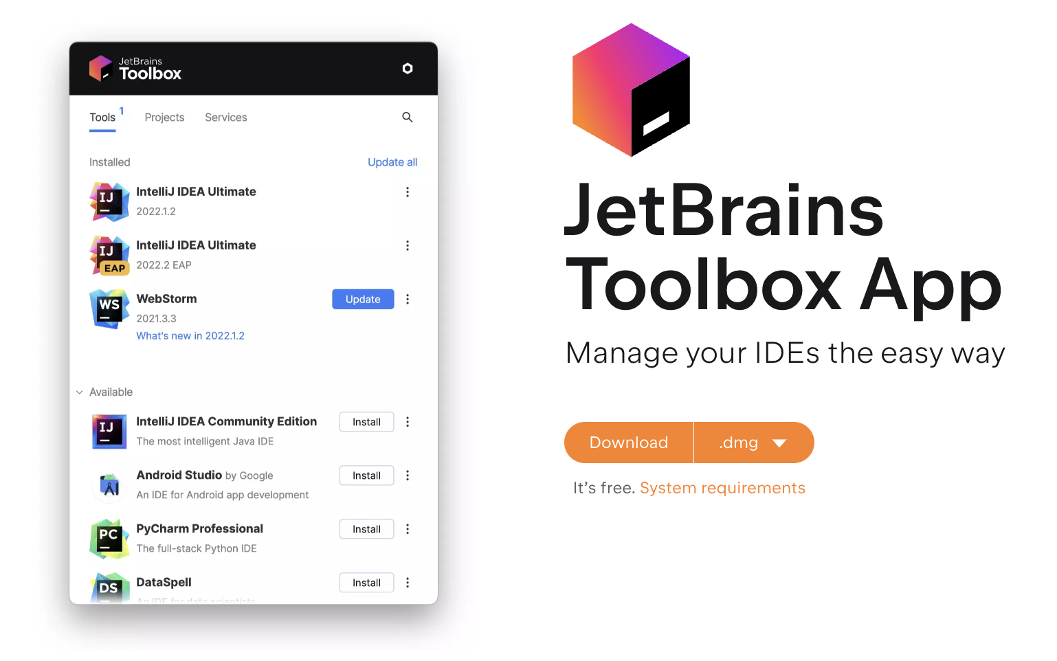 jetbrains toolbox 설치: https://www.jetbrains.com/toolbox-app/