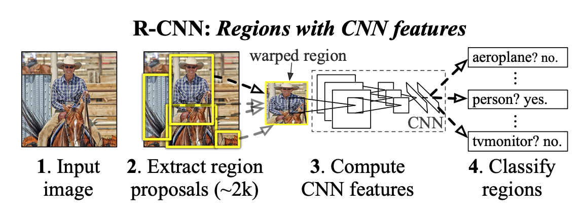 이제 각각의 단계별로 어떠한 계산 과정을 거치고, 구체적으로 R-CNN이 무엇을 학습하는지 알아보겠습니다.