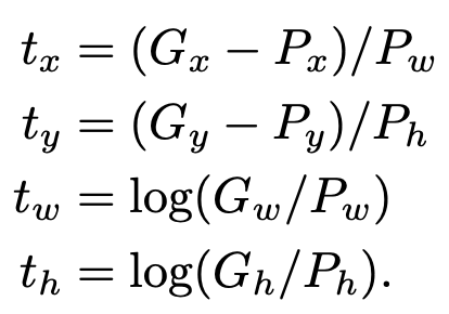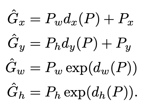 우리의 목표는 P에 해당하는 박스를 최대한 G에 가깝도록 이동시키는 함수를 학습시키는 것입니다.