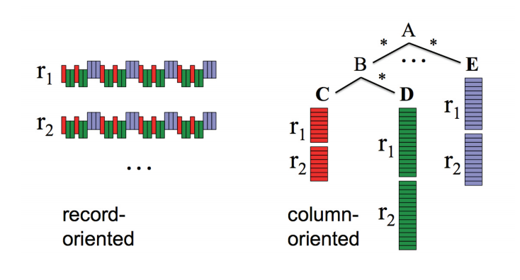 일반적인 RDBMS는 레코드 단위로 데이터를 저장합니다. 하지만 Dremal은 컬럼 단위로 데이터를 뜯어내어 저장합니다. Dremal은 애당초 방대한 양의 데이터를 분석하기 위해 설계되었습니다. 이런 스케일의 데이터를 컬럼 기반으로 저장할 경우 다음과 같은 장점이 있습니다.