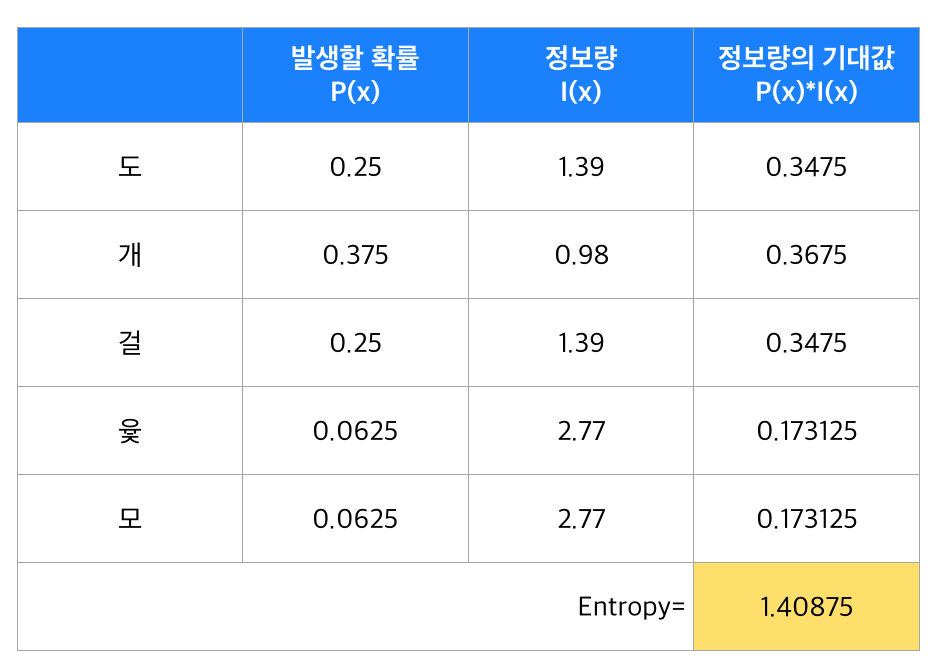 그렇다면 윷놀이의 엔트로피를 계산해보면 최종적으로 1.40875를 얻게 됩니다.