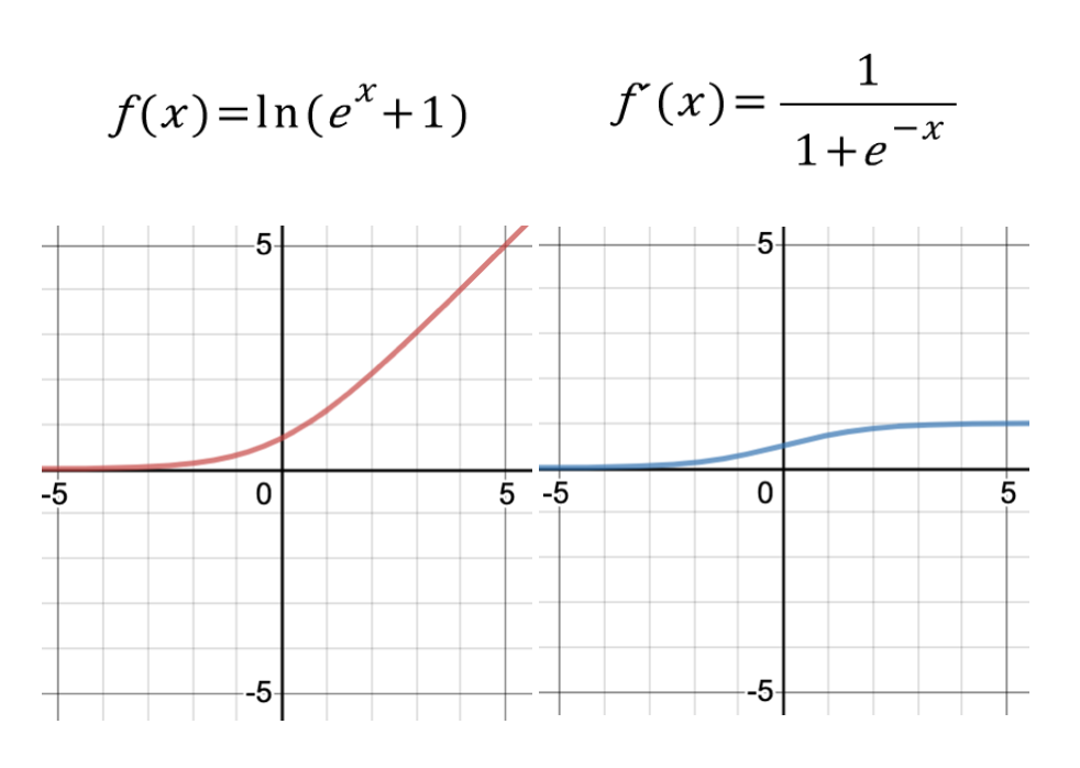특징: ReLU 함수를 부드럽게 깎아놓은 형태를 취합니다. 신기하게도 미분 함수가 시그모이드 함수가 됩니다.