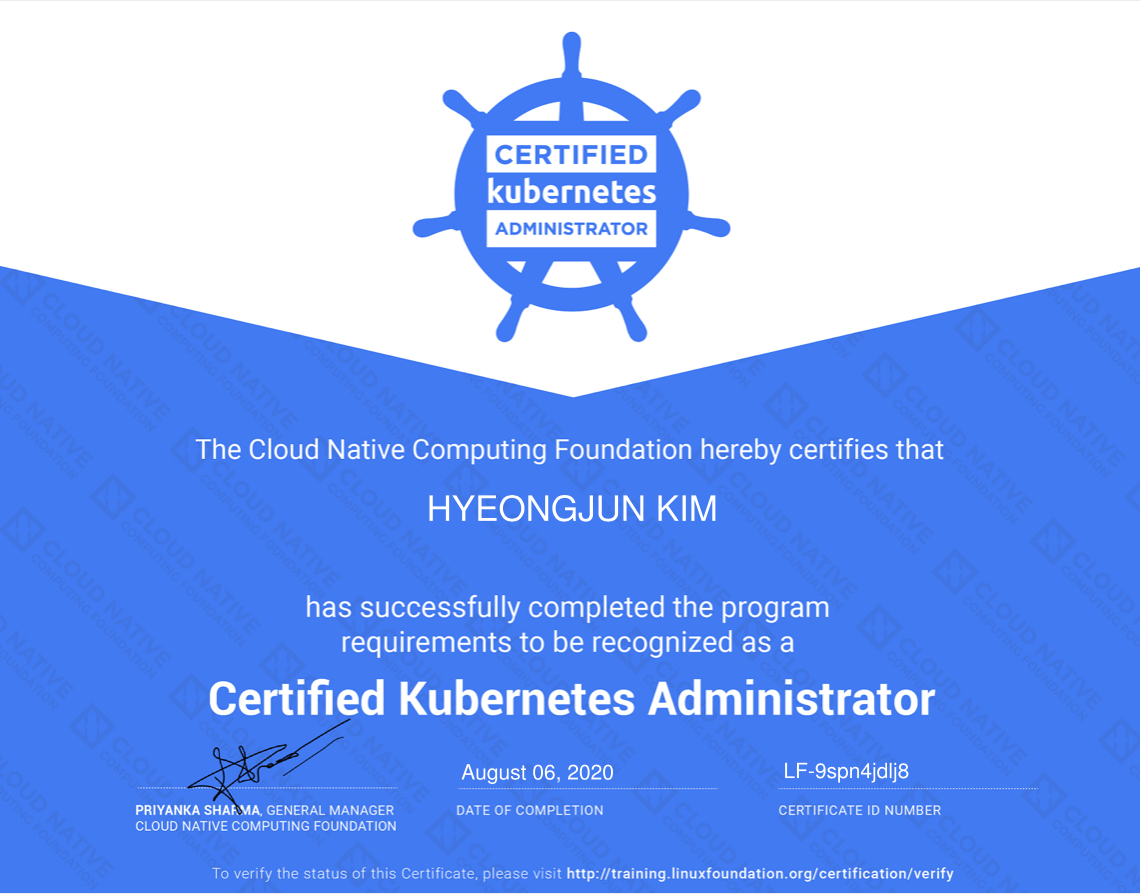 사실 저도 처음에는 CKA에 대해서 잔뜩 겁을 먹고 있었습니다. 후기를 올리신 분들이 모두 현업에서 몇년씩 경험을 쌓으신 분들이라 과연 내가 준비해도 괜찮은 시험인가 생각했습니다. 하지만 준비 과정이나 시험 자체는 생각했던 것 보다 어렵지 않았습니다. 만약 저처럼 막연한 두려움 때문에 응시를 망설이시는 분들이 있다면 과감히 도전해도 괜찮다는 말씀을 드리고 싶습니다.