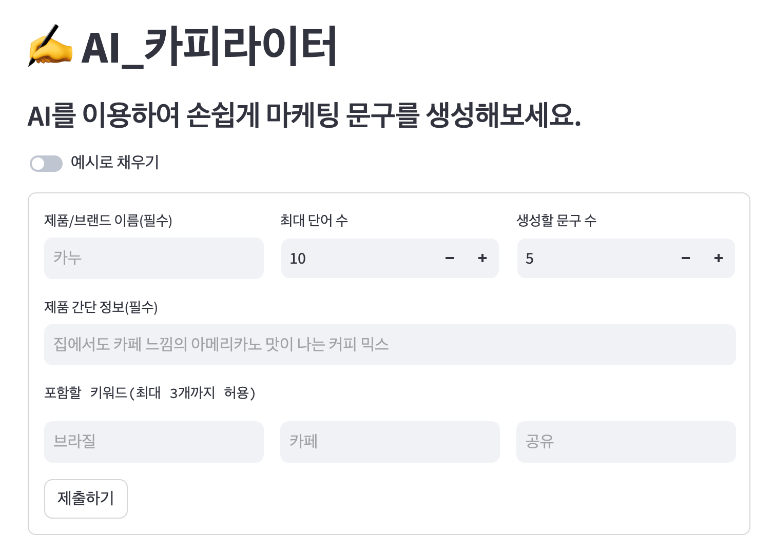 1. 마케팅 문구 생성기