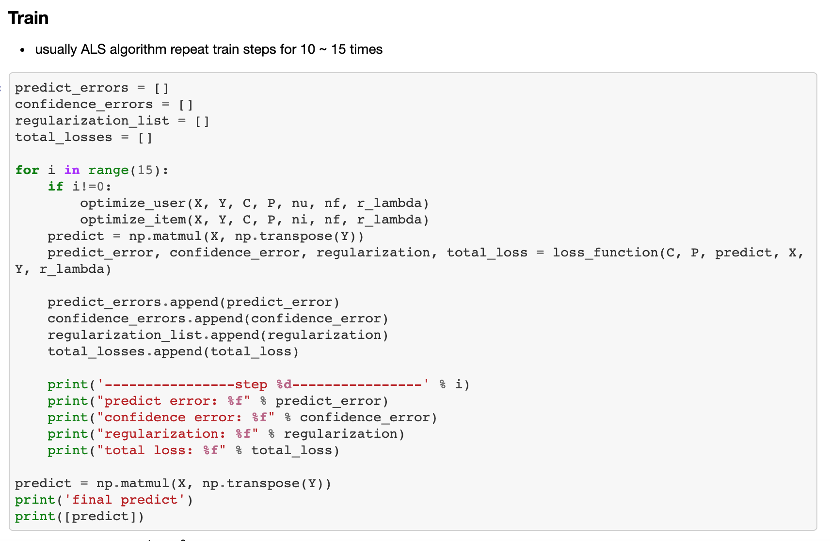 이 부분이 ALS 알고리즘의 핵심적인 부분입니다.