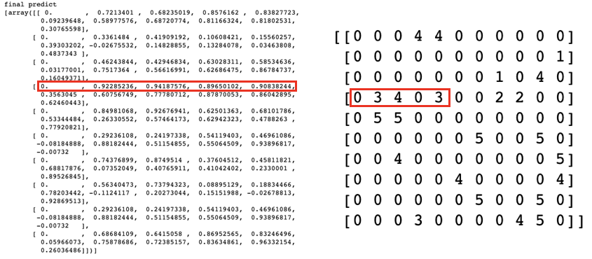 한편 첫 번째 항목의 경우 여전히 예측값이 0으로 남아있는 모습을 볼 수 있습니다.